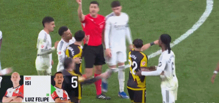 此役主场对阵巴列卡诺,维尼修斯在比赛第83分钟因推搡一名即将被换下的巴列卡诺球员而吃到一张黄牌。