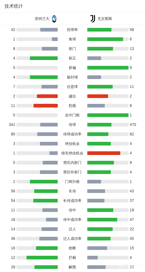 第27分钟,布雷默禁区手球被判点,斯卡马卡点射命中,亚特兰大1-0尤文