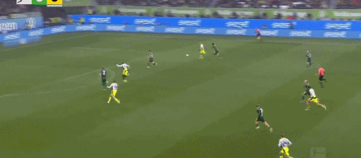 第67分钟,没穿射门靴,沃尔夫斯堡接连错失机会