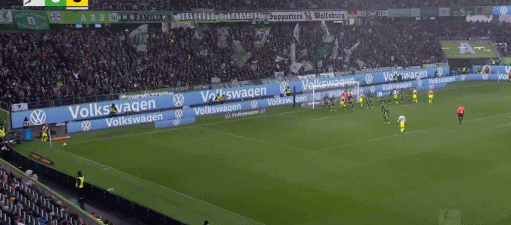 第52分钟,阿诺德开出任意球,库列拉基斯头球破门,沃尔夫斯堡1-1多特