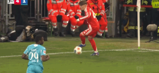 比赛第66分钟,伦纳特-卡尔在边路拿球后原地踩单车,结果左右脚连续碰到了球将球碰出界外,面前的对手普拉斯也忍不住给他“点赞”。