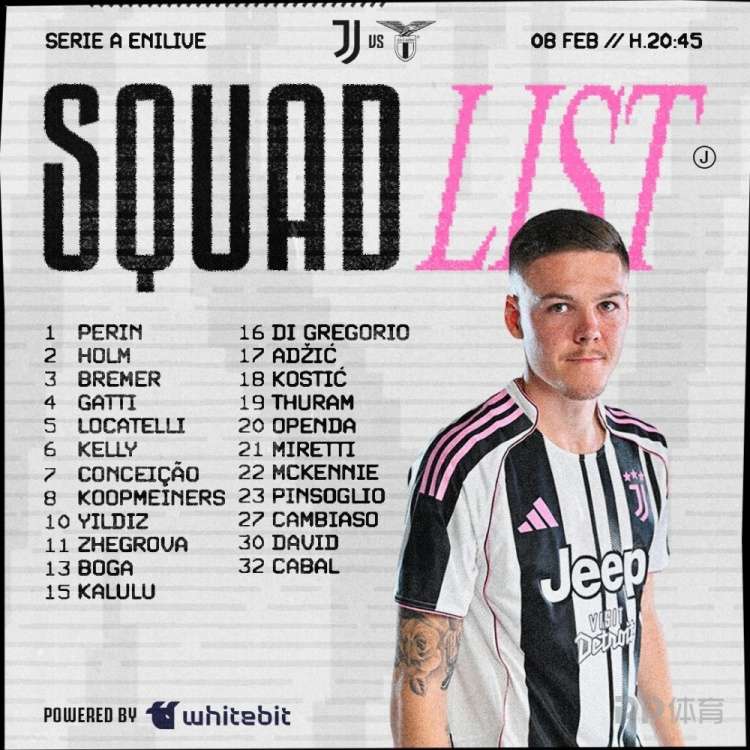 北京时间2月9日凌晨3:45,2025-26赛季意甲联赛第24轮,尤文图斯将在主场迎战拉齐奥。赛前,尤文官方公布本场比赛球队大名单,伊尔迪兹领衔锋线。